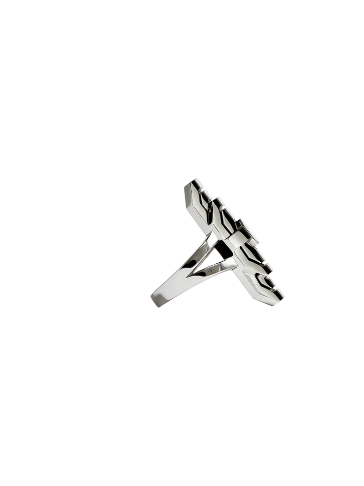 In her flagship store just off the Tuileries Gardens in the heart of Paris’ 1st arrondissement, designer Amélie Huynh presents her sharp, architectural jewellery. Finding its design language at the intersection of the Brutalist and Art Deco movements, and infused with a touch of Parisian rock & roll, each Statement Paris piece exudes power, strength, and ambition – serving as personal armour to the world. Trained with a heritage fine jewellery ‘maison’ on the famed Place Vendôme, Amélie has translated the traditional codes of fine jewellery into a modern interpretation with Statement; elevating sterling silver to the position of primary material. Throughout her collections, it takes center stage, plated in white rhodium and often set with micro-pavé of natural diamonds. The cornerstone of the collection is the iconic ‘My Way’ ring, which embodies the architectural, cool, and bold design language of the brand while showing extreme finesse through its micro-pavé diamond setting and delicate craftsmanship. It is this blend of raw strength and refined elegance, as well as its surprising use of silver as its primary metal, that defines Statement Paris – resulting in jewellery that is both bold and timeless.