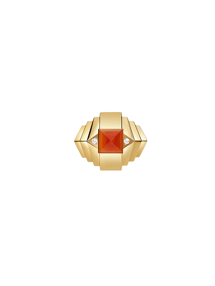 Ring rockaway mini pyramid cornaline, diamonds & yellow gold