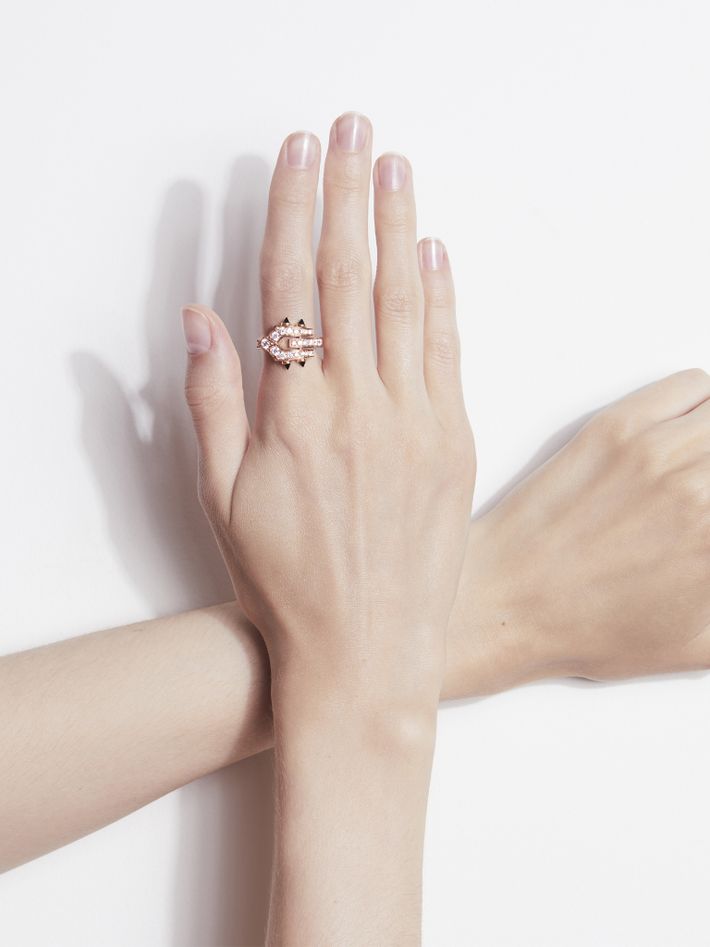 Ring spike diamonds, 18k pink gold & black agates