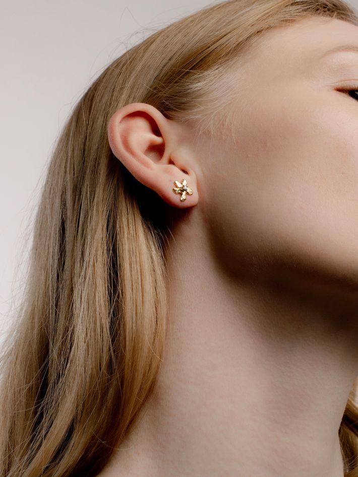 Ringo flower earrings in 18k yellow and white gold with 0,04ct diamond
