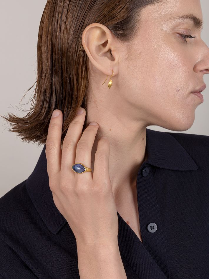 91.6% gold content, a warmer beeswax-yellow hue. An exclusive and malleable precious metal which will shape slightly to the wearer over time. 22kt gold is hypoallergenic and generally safe for people with sensitive skin.
