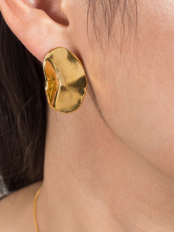 Made of plated 18 karat yellow gold, a thin layer of precious metal layered on the surface of a precious base metal. We recommend using our replating service every 3 or 4 years.