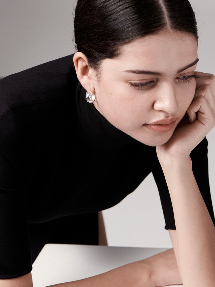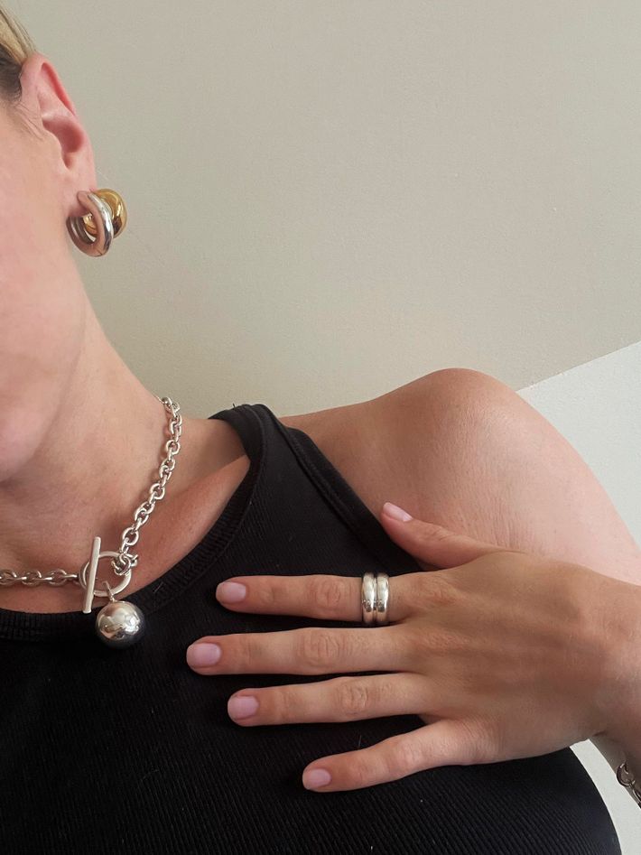 "AGMES make cool, sculptural jewellery with responsible practices. Their hoops and stacking rings look best when worn doubled up, and you should mix your metals too. This jewellery will become a staple."