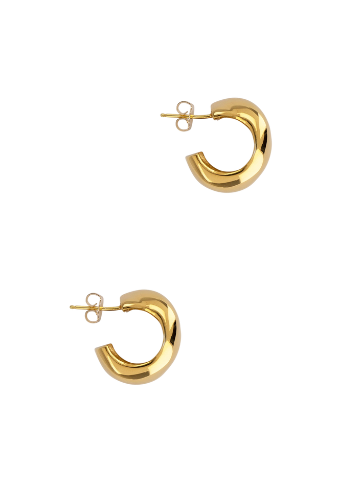 This is a great take on a classic chunky hoop, made to be worn everyday. Also available in a gold plated version to mix and match.