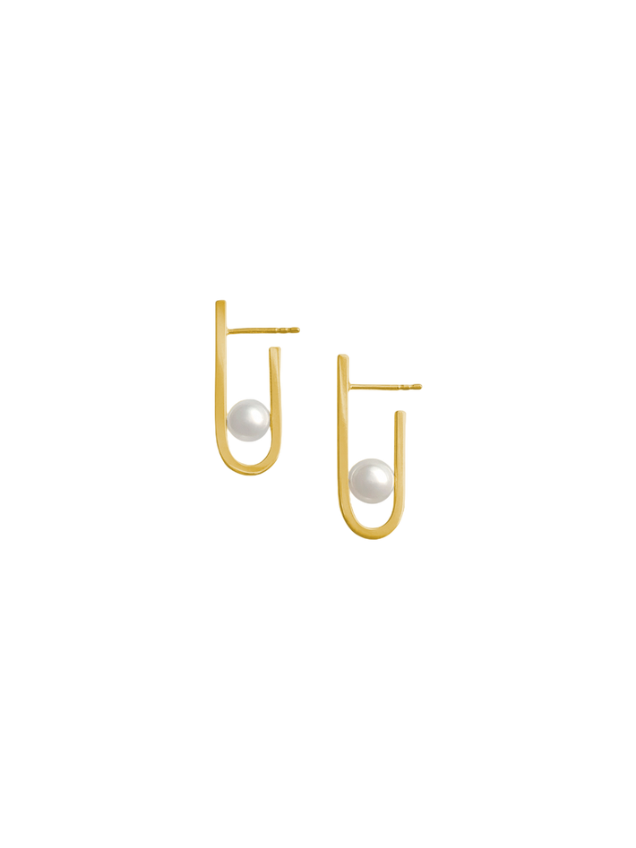 String earrings in gold vermeil with freshwater pearl
