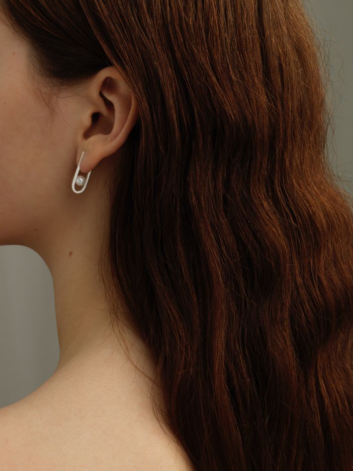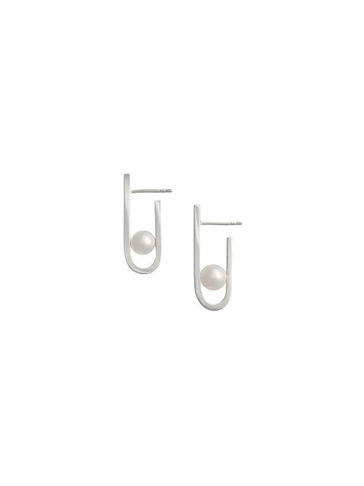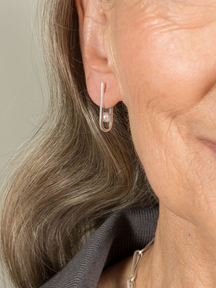 String earrings in silver with freshwater pearl