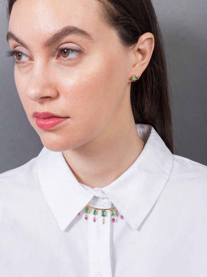 14 kt solid yellow gold0.1 ct in 2 emeraldsPair of earrings