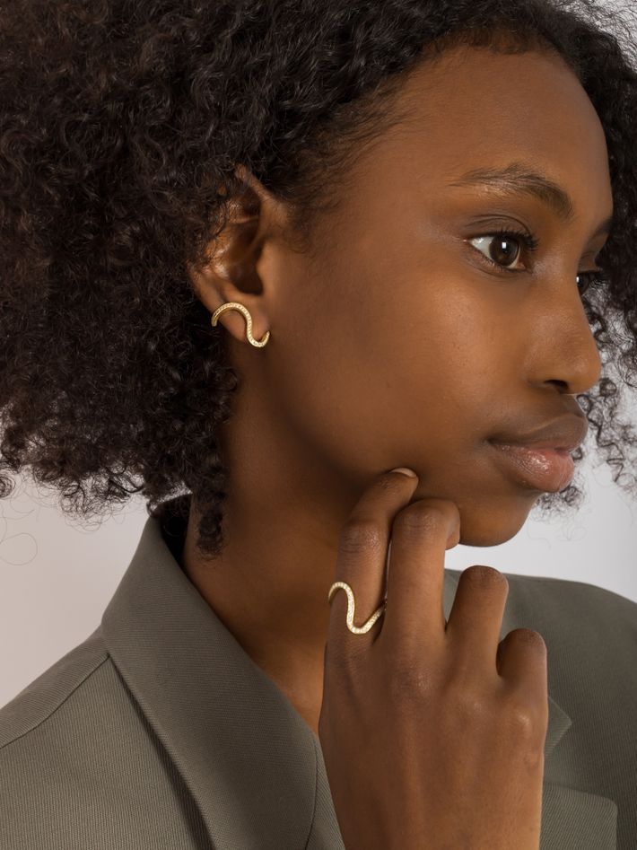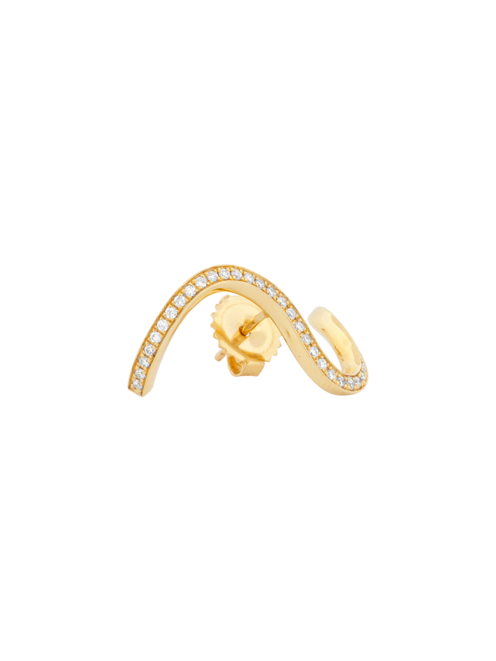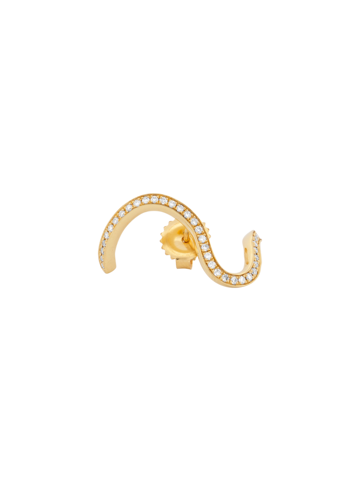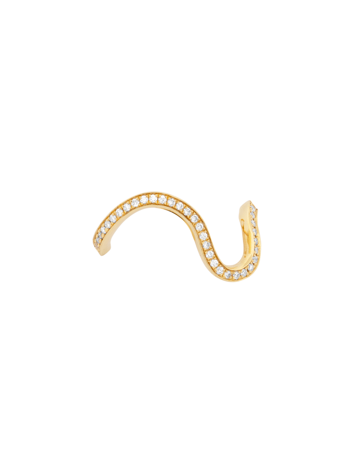 A soft fluid line of diamonds that cascades around the ear and is so eye-catching.
