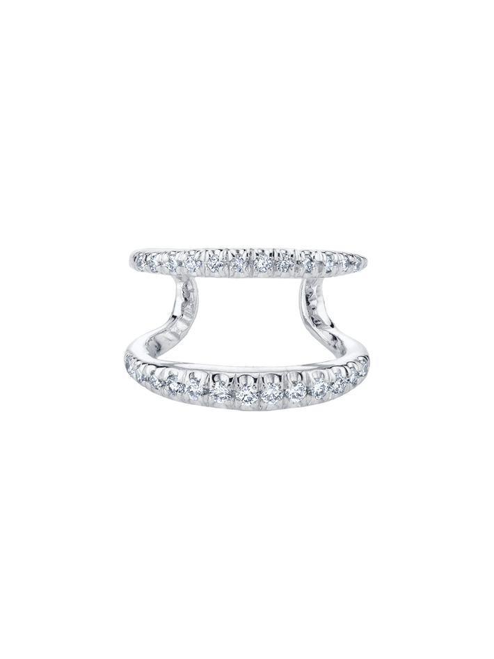 Twin tusk ear cuff with double line pavé white diamonds in white gold