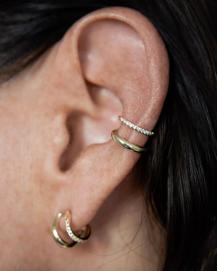 Twin tusk ear cuff with white pavé diamonds 14k rose gold