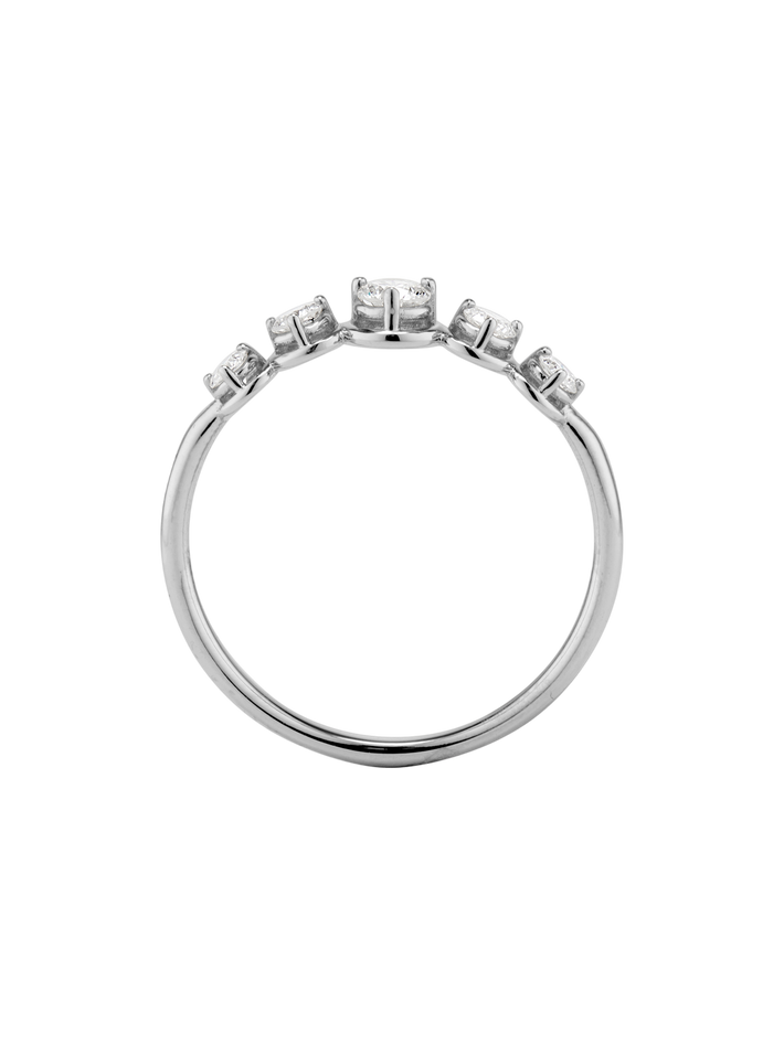 58.3% gold content, plated with rhodium, cool white hues. Relatively hard making it a popular choice for jewellery that lasts a lifetime. 14kt gold is hypoallergenic and generally safe for people with sensitive skin.