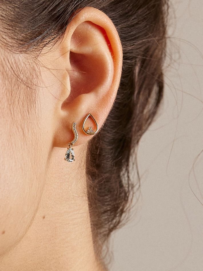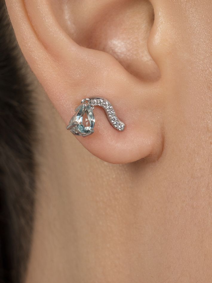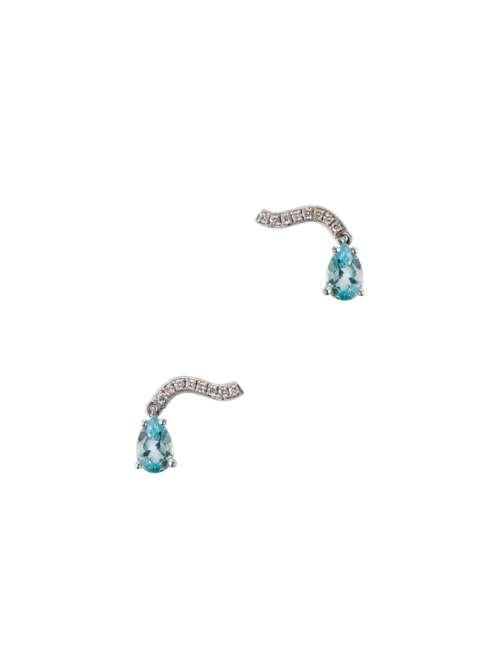Wave diamond earrings with aquamarine drop