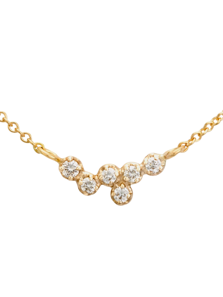 Prong set round diamonds set in a cluster pendant.