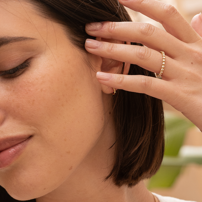 75.0% gold content, a warm buttery yellow hue and considered the most classic gold. An exclusive as well as durable precious metal. 18kt gold is hypoallergenic and generally safe for people with sensitive skin.