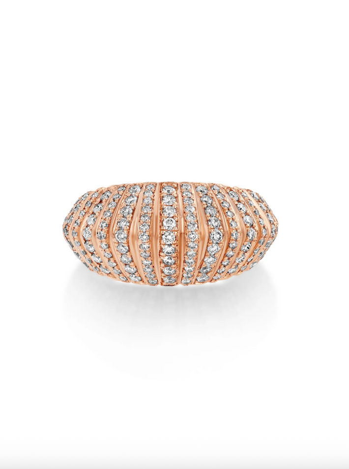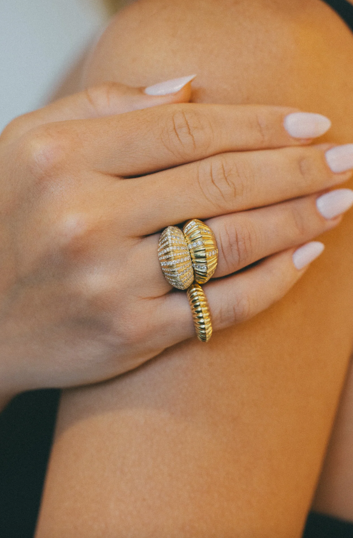 XL Fluted Crescent Ring With Full Pave