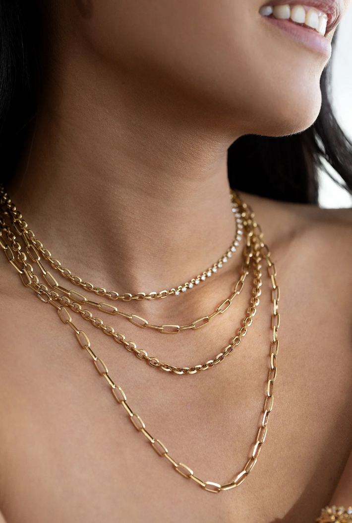 Lizzie’s minimal jewellery has a strong impact. Choose from fine chains with floating gemstones or something a little more bold. Her pieces are designed to be layered and can also be personalised.