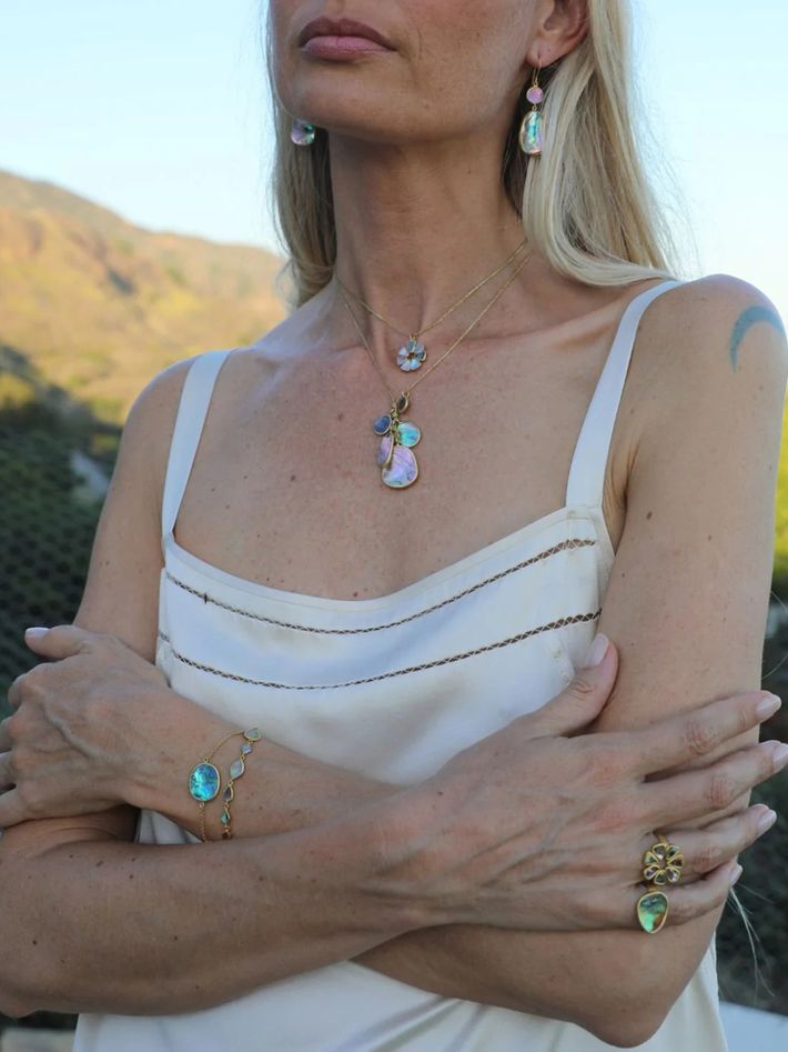 18kt gold venus abalone shell full stone bracelet