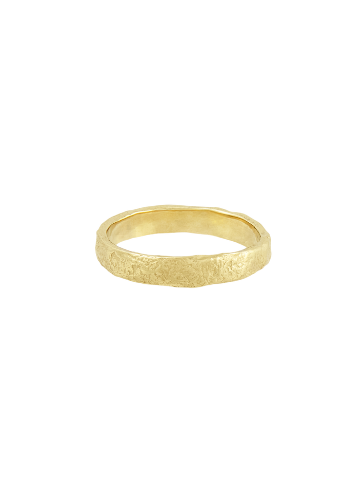 Made of a single, solid precious metal or metal alloy. Highly durable, can always be re-polished to regain its shine after wear.