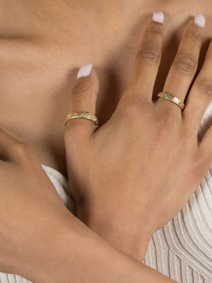 58.3% gold content, relatively hard with a subdued yellow hue, making it a popular choice for jewellery that lasts a lifetime. 14kt gold is hypoallergenic and generally safe for people with sensitive skin.