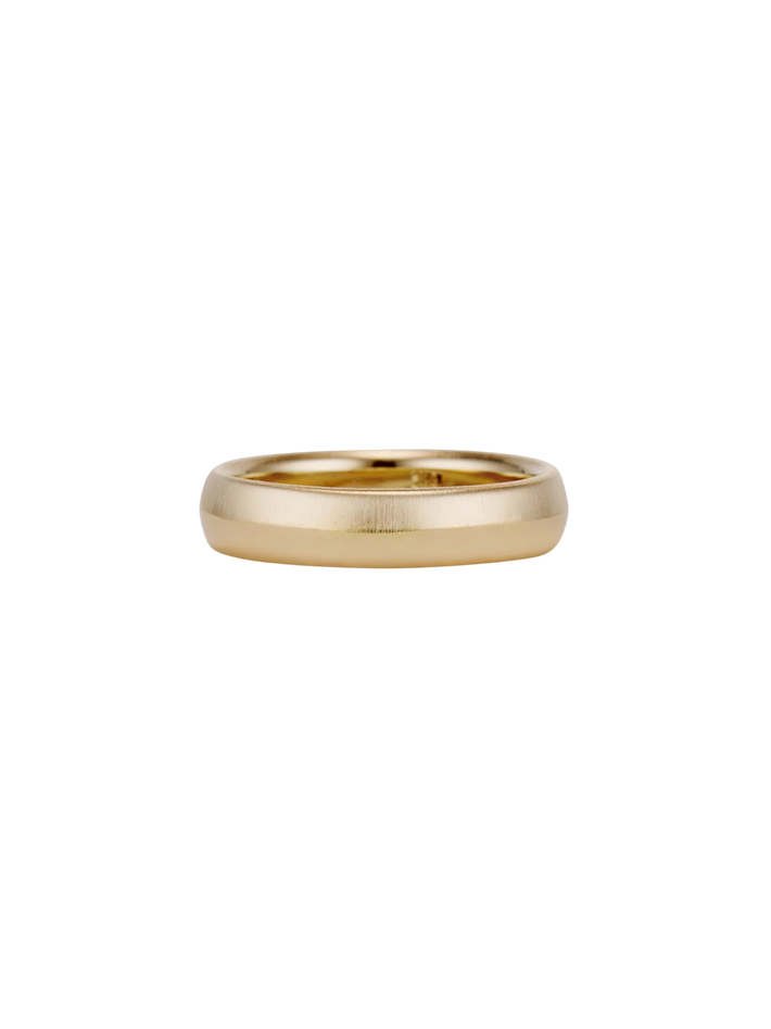 Made of a single, solid precious metal or metal alloy. Highly durable, can always be re-polished to regain its shine after wear.