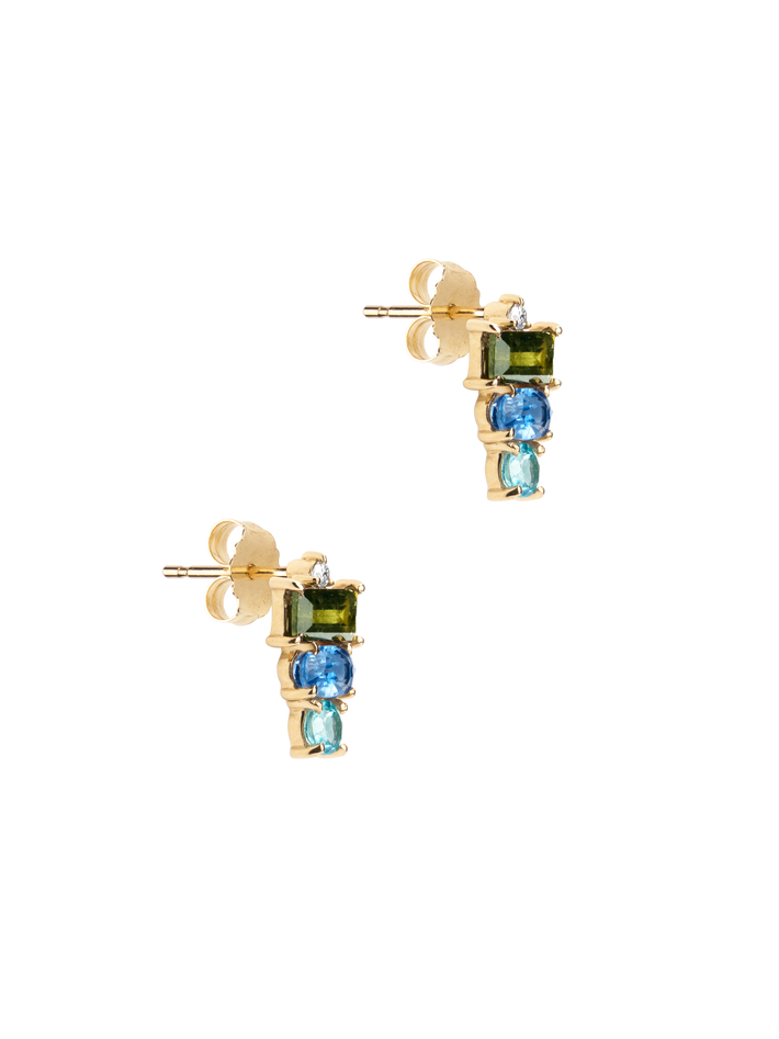 Only one piece made14 kt solid yellow gold2 tourmalines, 2 kyanites, 2 diamonds & 2 othersPair of earrings