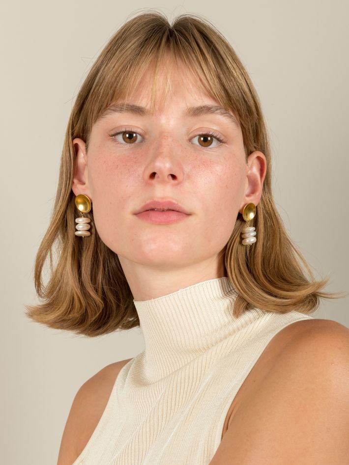 18 kt yellow gold plated sterling silver6 pearlsPair of earrings