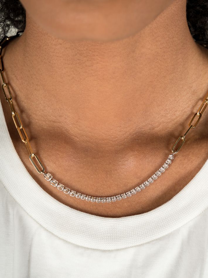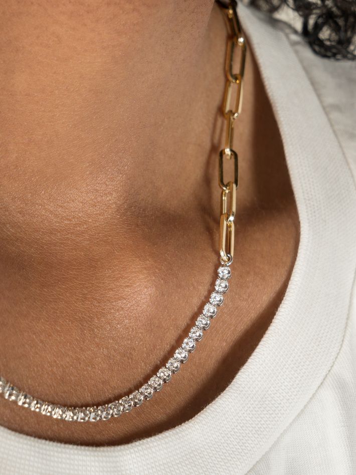 A precious and highly durable metal which comes in different golden hues depending on its purity.