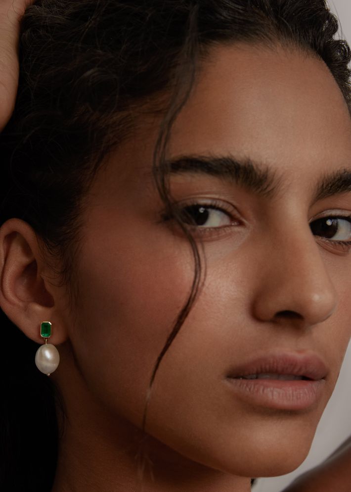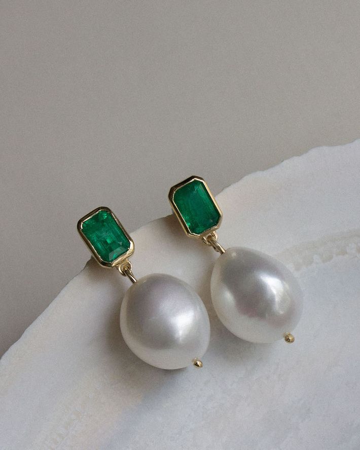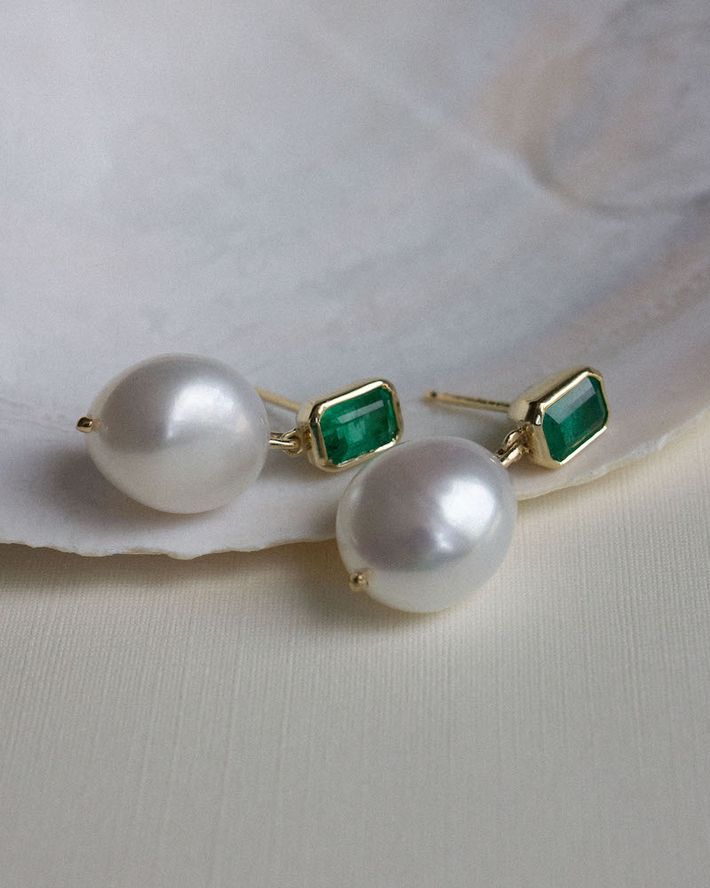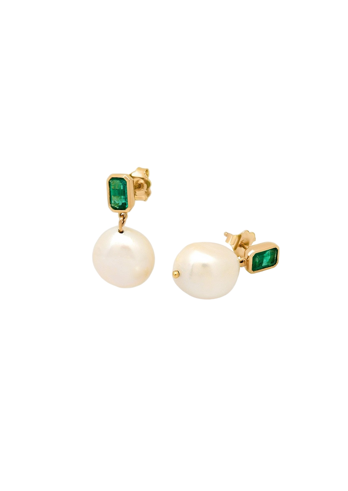 Baroque pearl drop earrings emerald