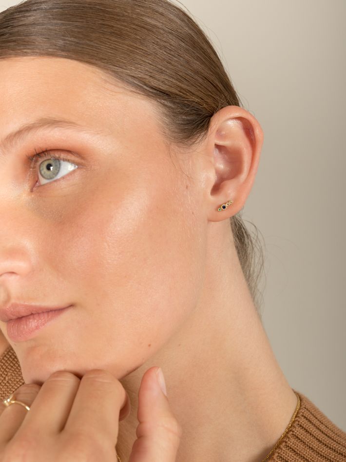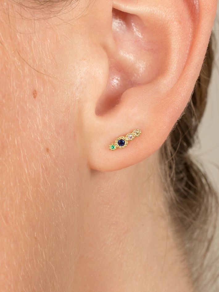 This precious stud adds a small pop of colour and texture with Jennie's signature milgrain detailing.