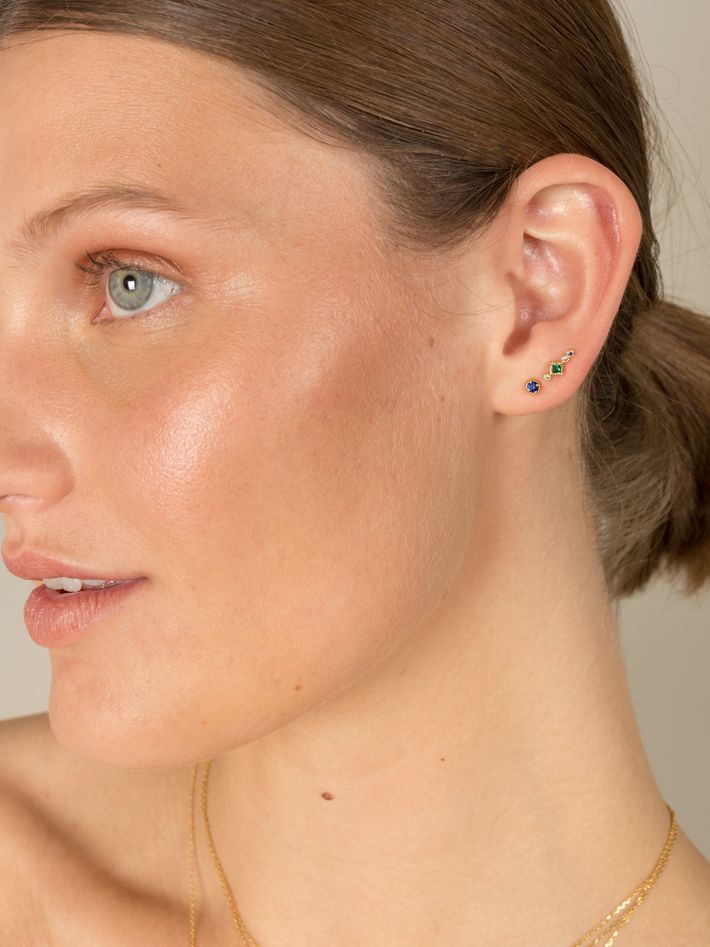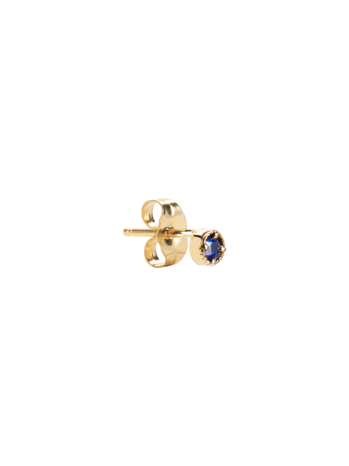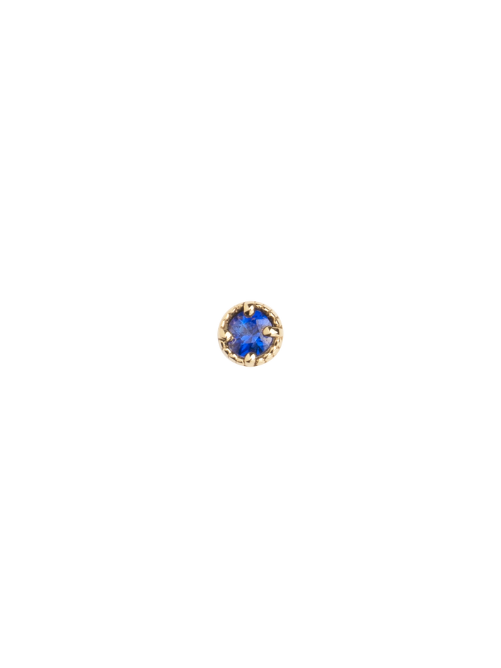 A classic sapphire stud with fine miligrain detailing, wear solo for a subtle statement.