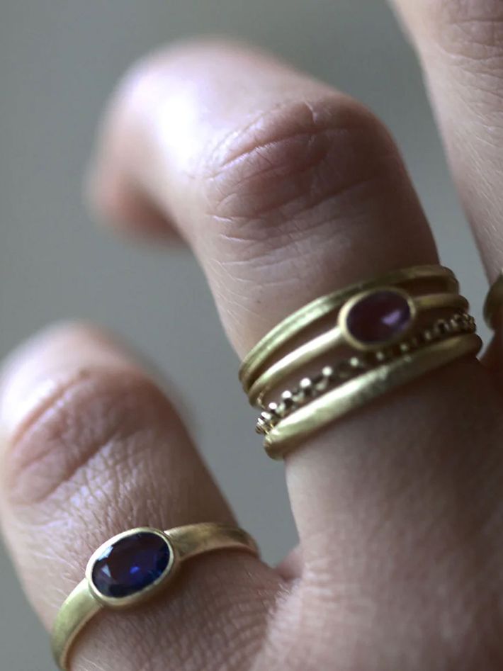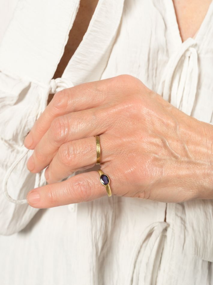 91.6% gold content, a warmer beeswax-yellow hue. An exclusive and malleable precious metal which will shape slightly to the wearer over time. 22kt gold is hypoallergenic and generally safe for people with sensitive skin.