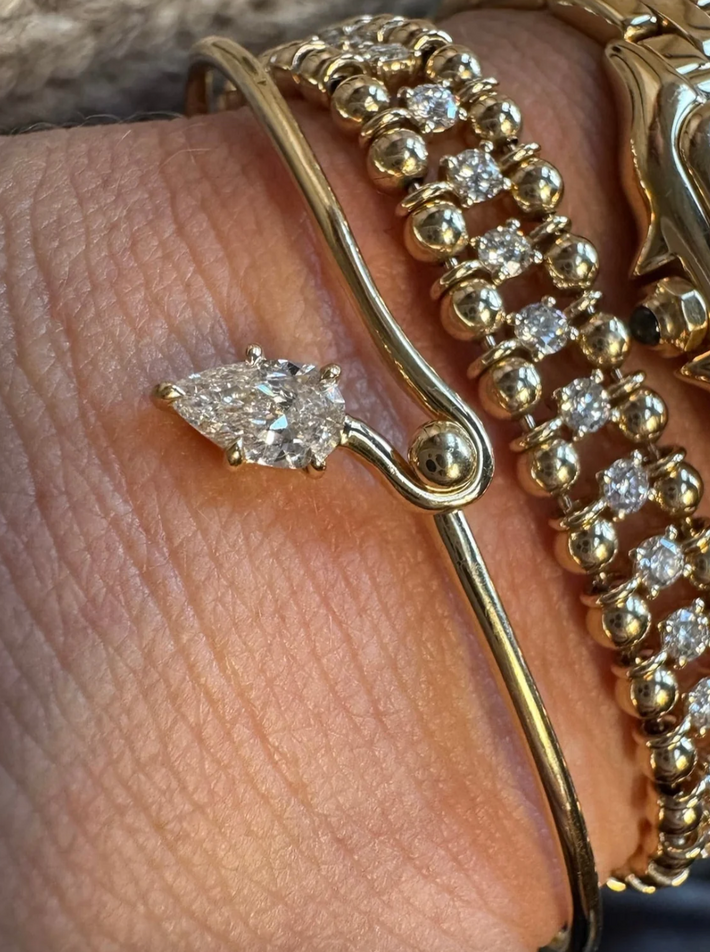 Made of solid 14 karat yellow gold, with the piece comprising one single type of metal. May need an occasional polish if worn regularly to maintain its shine.
