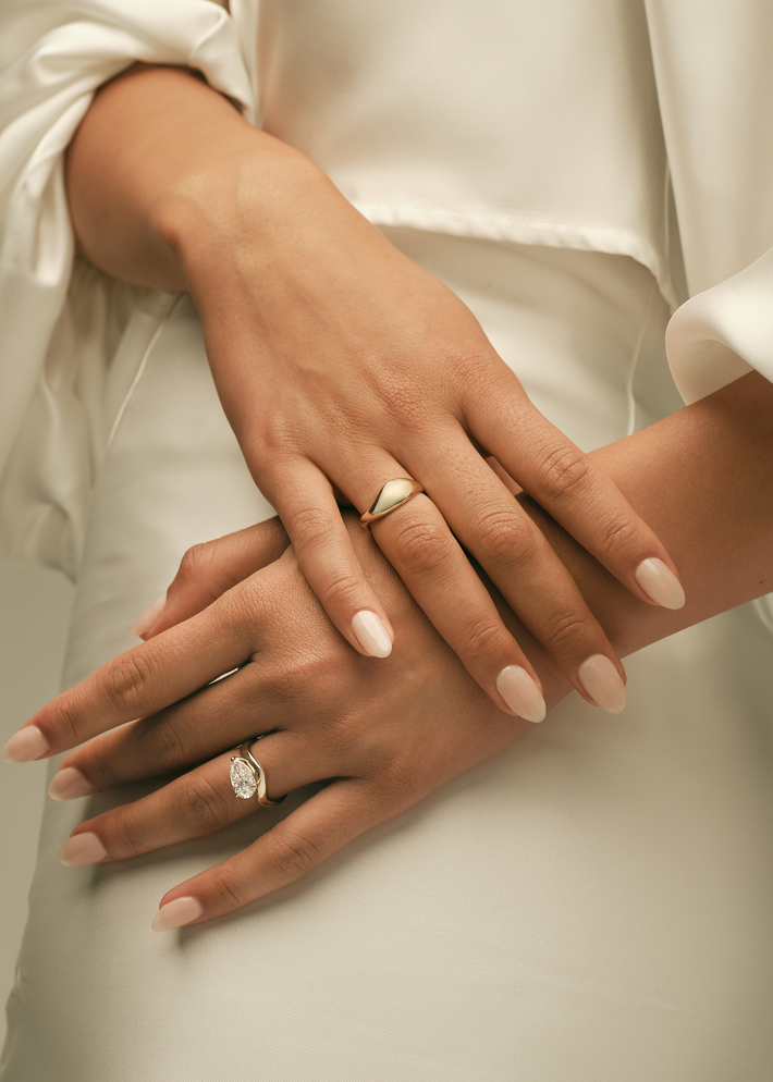 Made of a single, solid precious metal or metal alloy. Highly durable, can always be re-polished to regain its shine after wear.