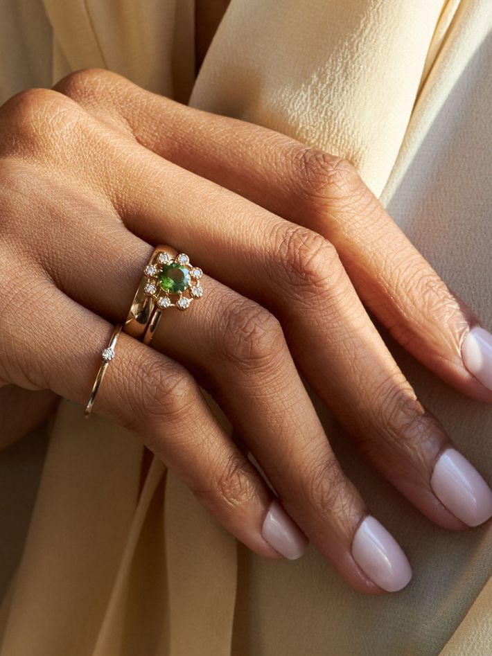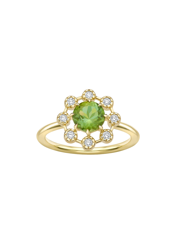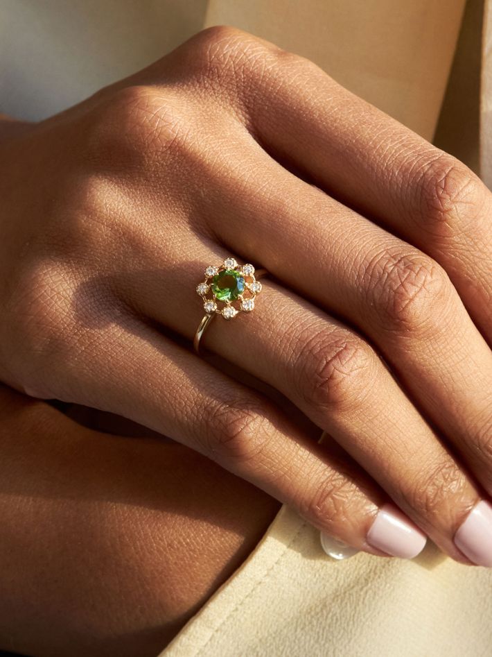 Celandine 14k green tourmaline & created diamond ring