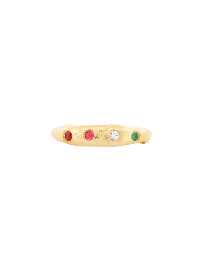 14 kt solid yellow gold1 diamond, 1 emerald, 1 ruby & 1 sapphire