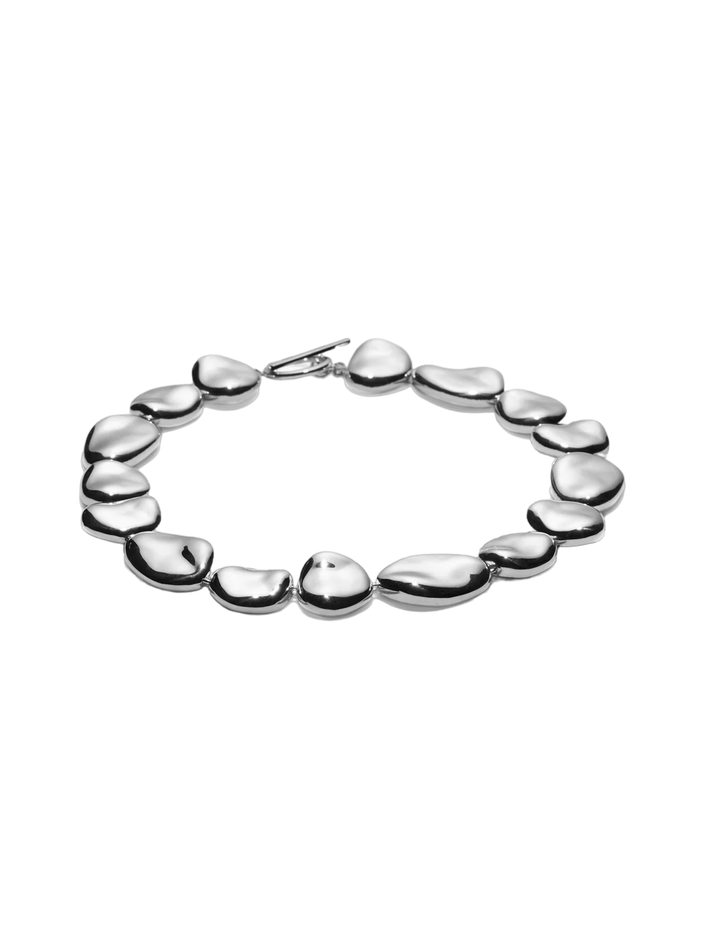 Made of solid sterling silver, with the piece comprising one single type of metal. May need an occasional polish if worn regularly to maintain its shine.