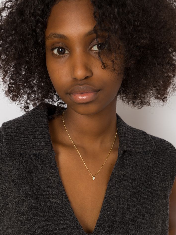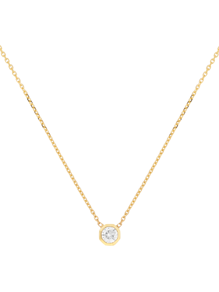The clean form of this necklace showcases the beauty of gold and diamond. A stunning diamond necklace.