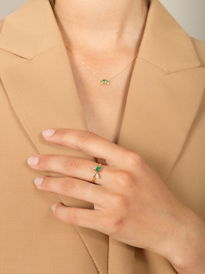 18 kt solid yellow gold0.05 ct in 2 diamonds & 0.23 ct in 1 emerald