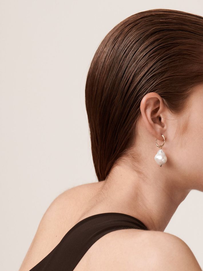 Diamond hoop earrings with baroque pearl