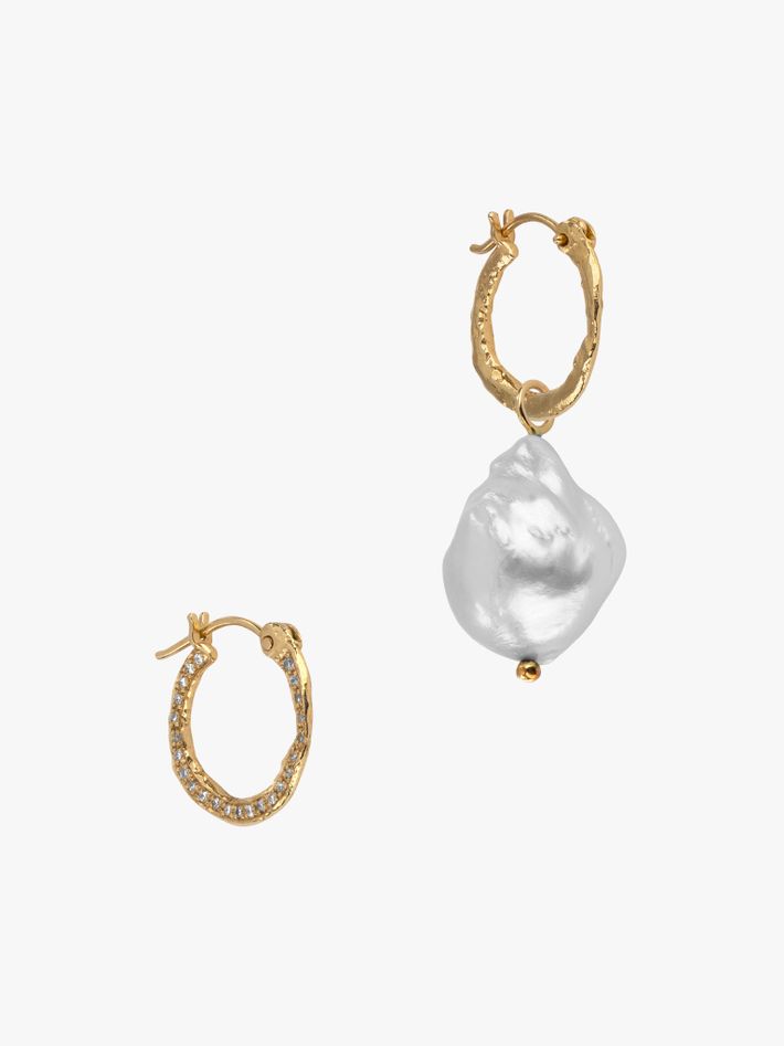 You will make an asymmetric pearl statement with these earrings, a single unique baroque pearl on a pair of diamond pavé hoops.
