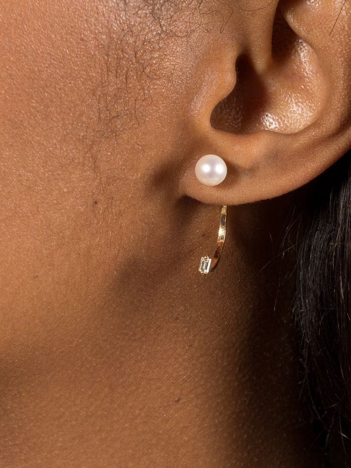 18 kt solid yellow gold0.08 ct in 1 diamond & 1 pearlSingle earring