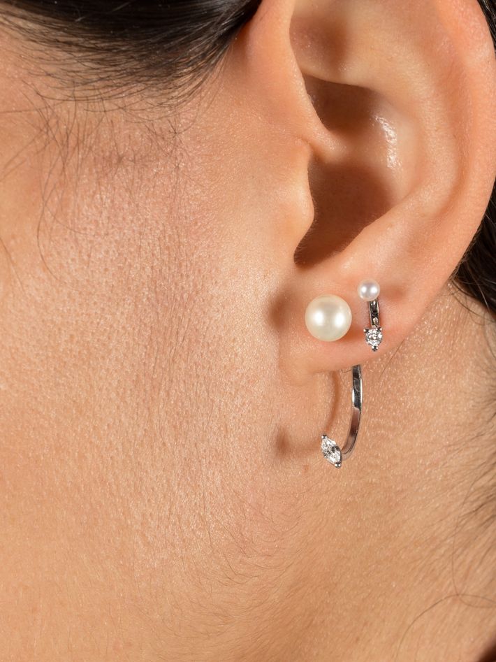 18 kt solid white gold0.08 ct in 1 diamond & 1 pearlSingle earring