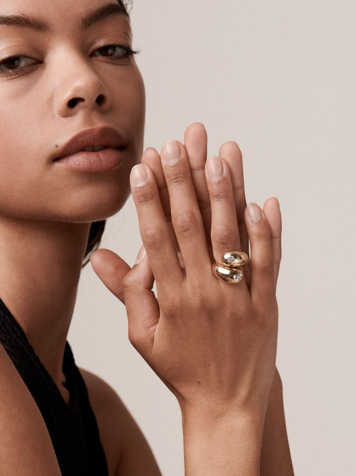 Double apse diamond bezel ring