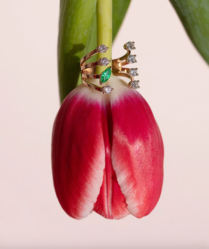18 kt solid rose gold1.05 ct in 7 diamonds & 0.35 ct in 1 emerald