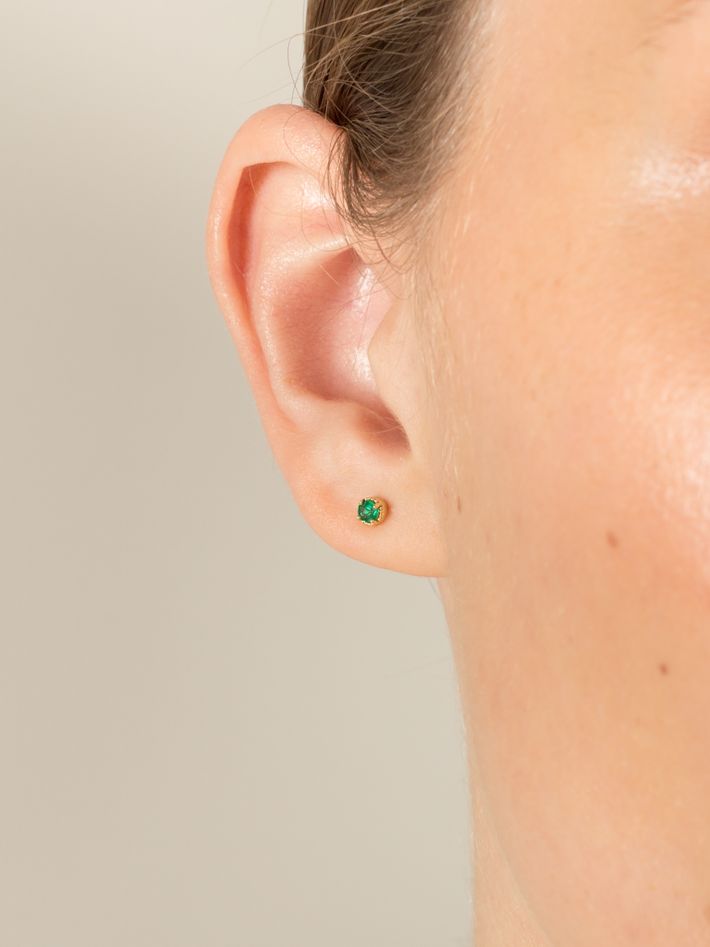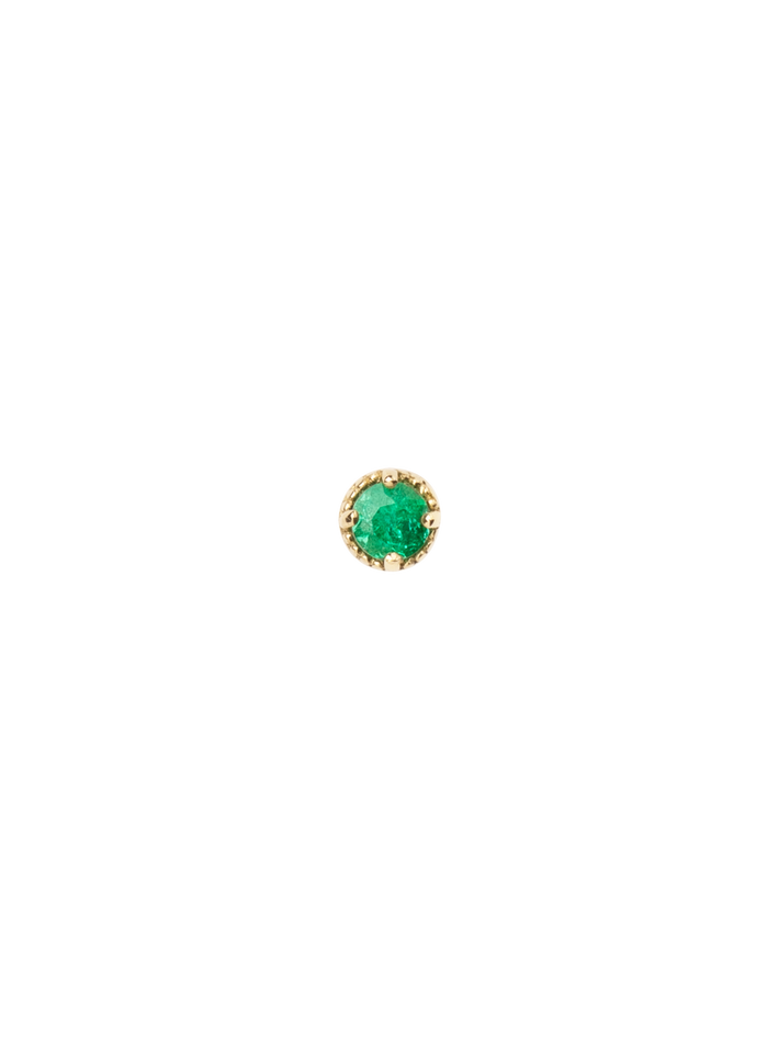 A classic emerald stud with fine miligrain detailing, wear solo for a subtle statement.