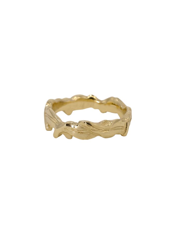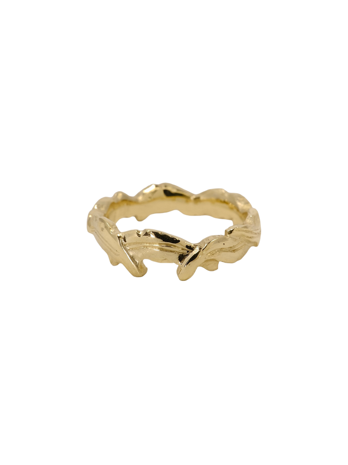 Made of a single, solid precious metal or metal alloy. Highly durable, can always be re-polished to regain its shine after wear.