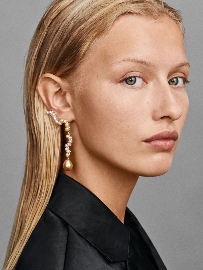 9 kt solid yellow gold18 pearls & 1 pearlRight single earring