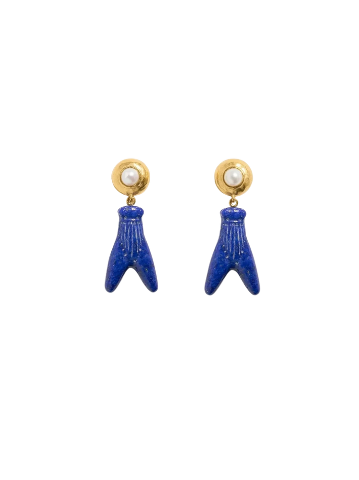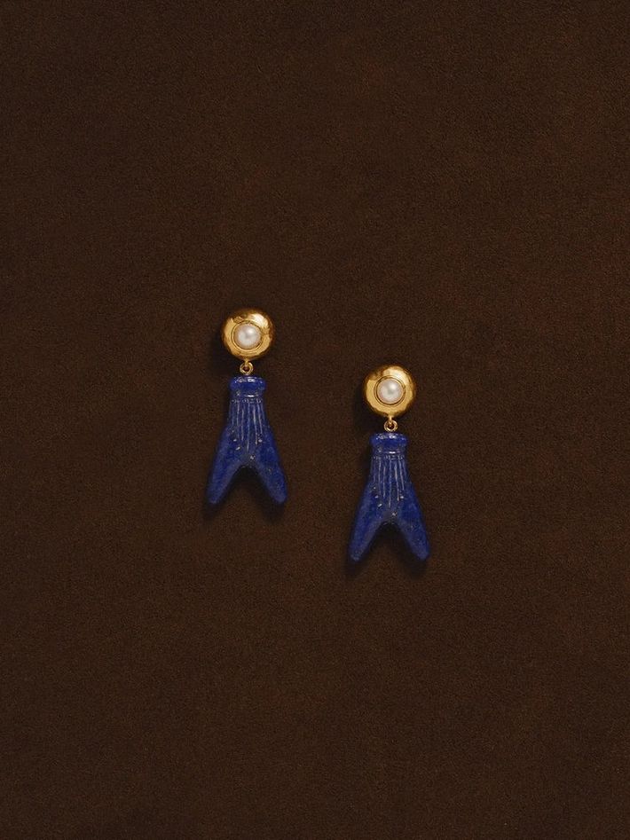 18 kt yellow gold plated sterling silver2 pearls & 2 lapisPair of earrings