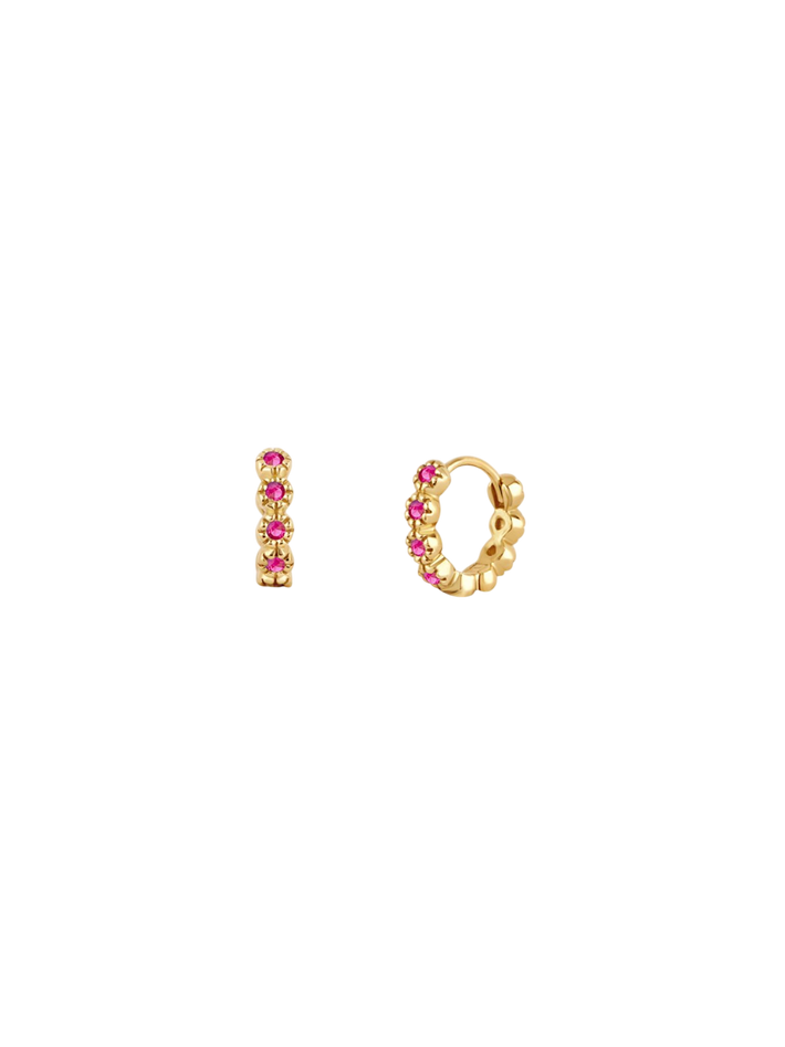 Each Forget Me Not Ruby Huggie Hoop has 5 0.18ct Rubies