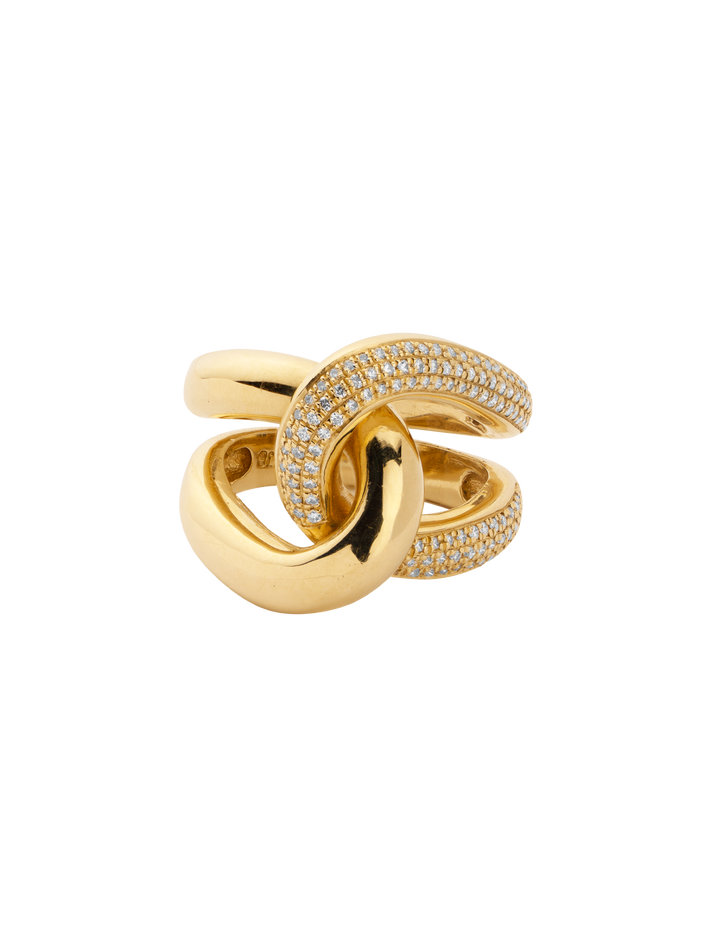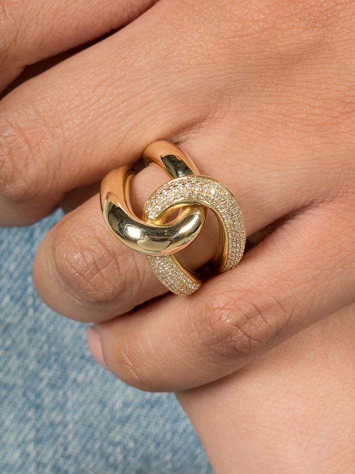 Full link ring with white pavé diamonds